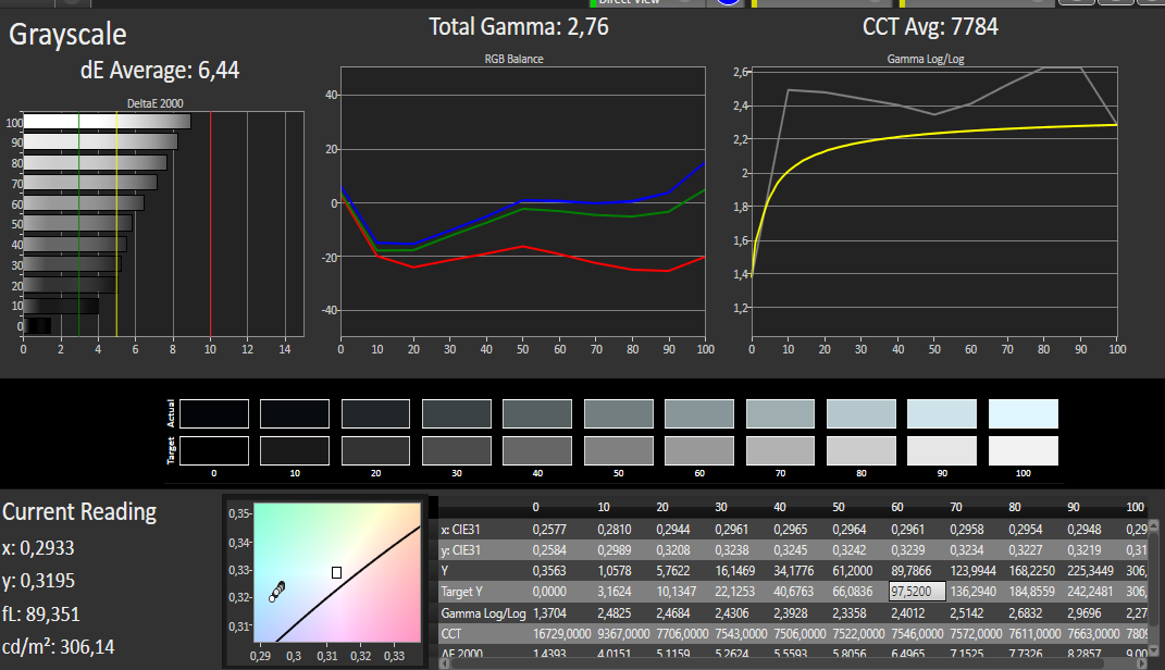 ΔE Greyscale Calman: 6.44 | ∀{0.09-98 Ø5}