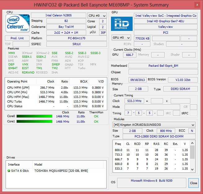 | Packard Bell EasyNote ME69BMP HD Graphics (Bay Trail), N2805, Toshiba MQ01ABF032 | Lenovo ThinkPad Edge E145 Radeon HD 8240, E1-2500, Hitachi Travelstar Z5K500 HTS545050A7E380 | Medion Akoya E1317T Radeon HD 8180, A4-1200, Hitachi Travelstar Z5K500 HTS545050A7E680 | |